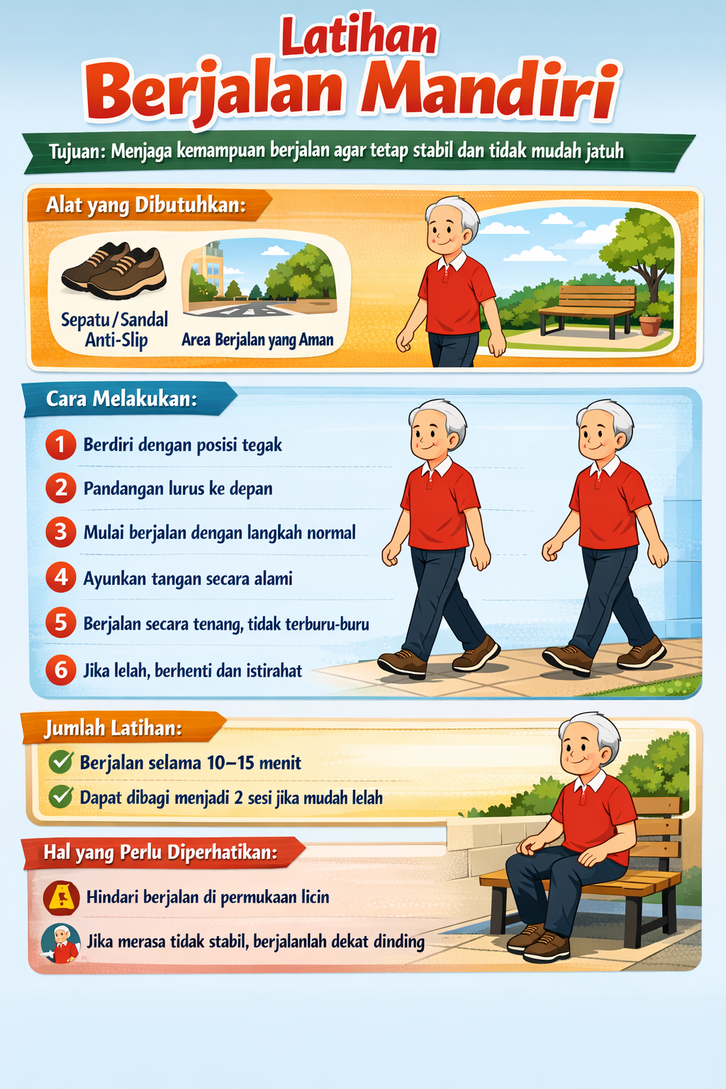 Tujuan : Menjaga kemampuan berjalan agar tetap stabil dan tidak mudah jatuh.