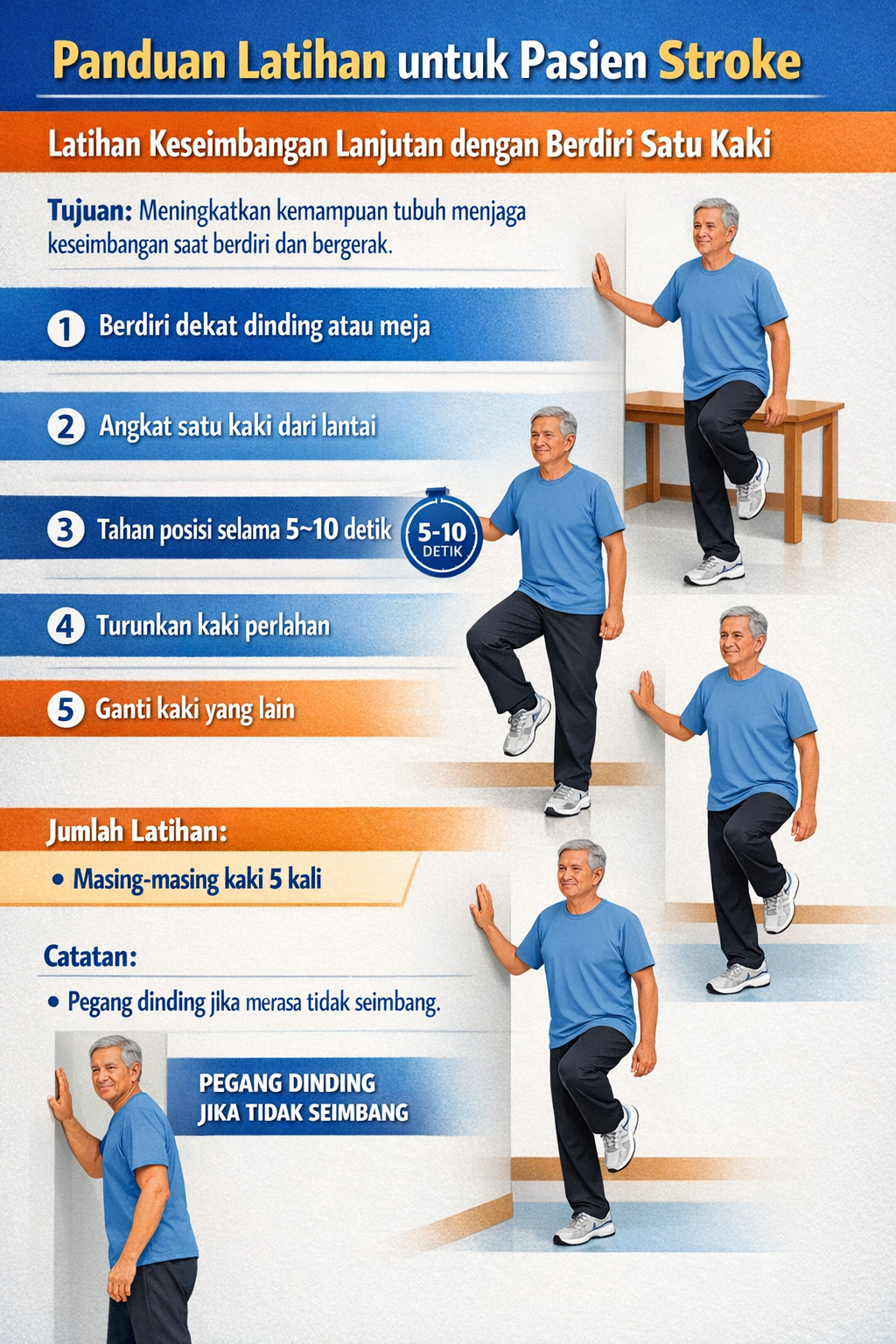 Latihan pada tahap ini latihan bertujuan untuk meningkatkan keseimbangan, kekuatan tubuh, dan menjaga kemampuan fungsional agar pasien tetap aktif dan aman beraktivitas.