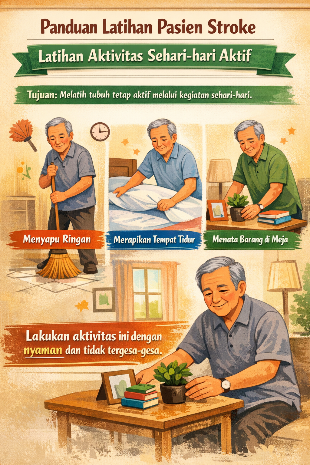 Panduan ini ditujukan untuk pasien stroke yang sudah mampu melakukan aktivitas sehari-hari secara mandiri, seperti berjalan, makan, berpakaian, dan ke kamar mandi tanpa bantuan.